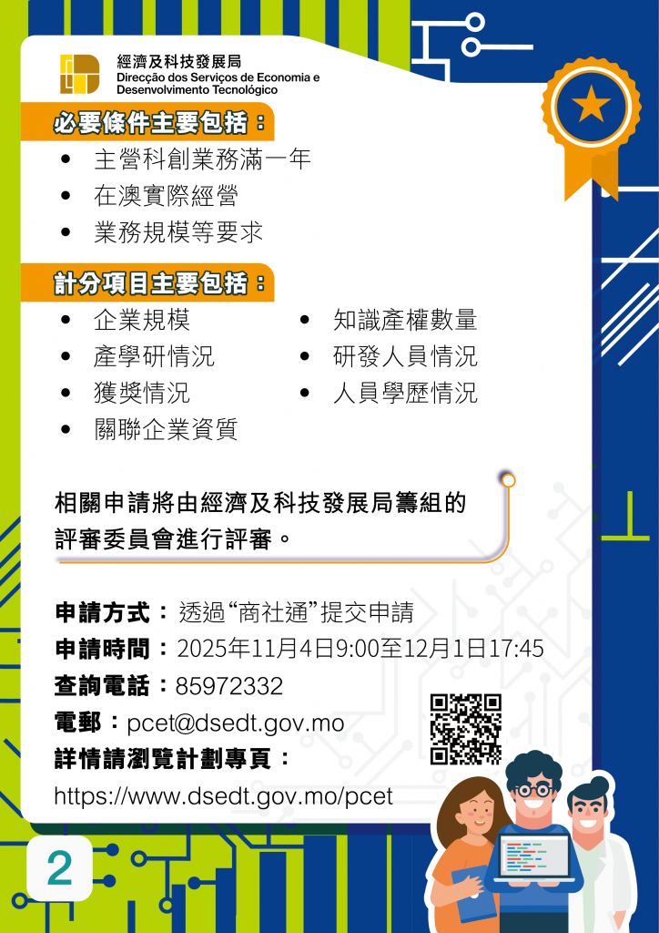 - 親臨澳門南灣羅保博士街1至3號國際銀行大廈經濟及科技發展局13樓科技廳提交紙本申請表及相關文件。