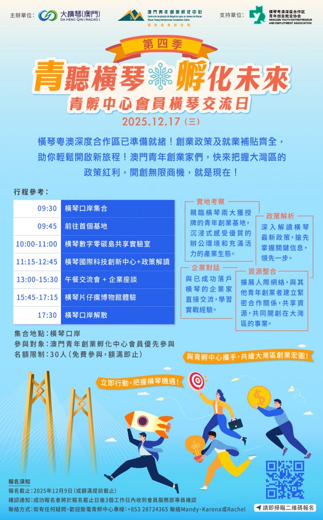 第四季”青”聽橫琴.”孵”化未來-青孵中心會員横琴交流日接受報名!